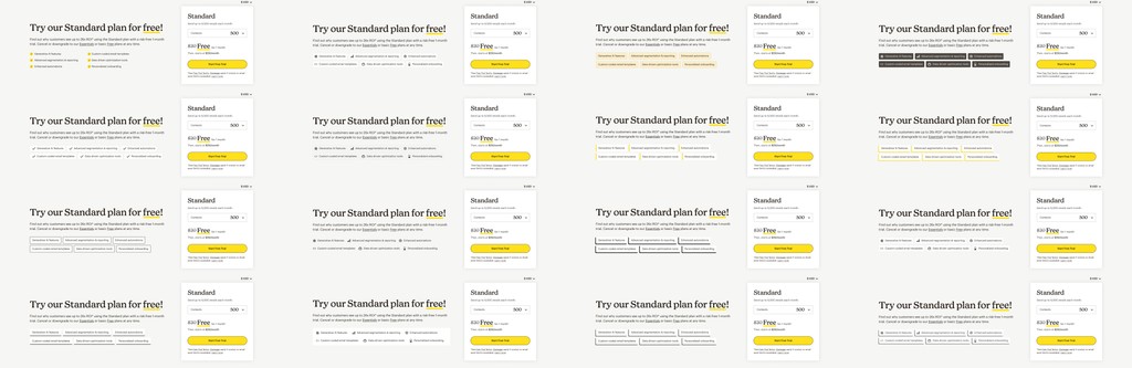 Bonus: For the a-spot value props, I designed almost 20 visual variations of a bulleted list to test against each other for clarity before landing on our solution.