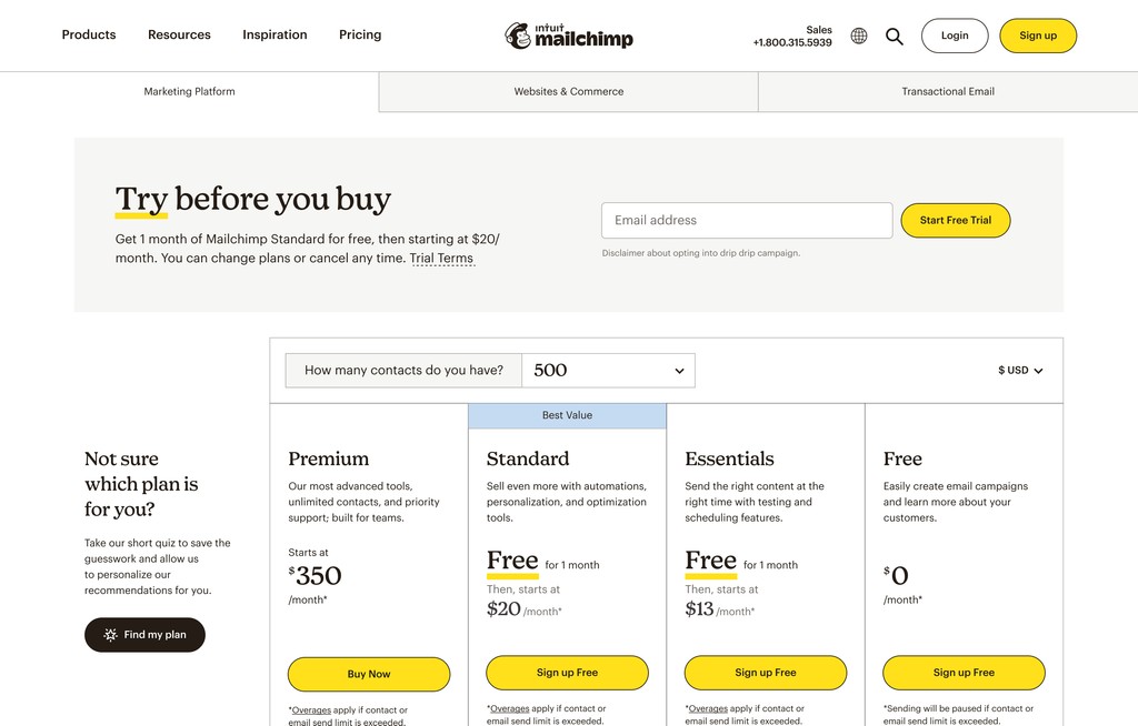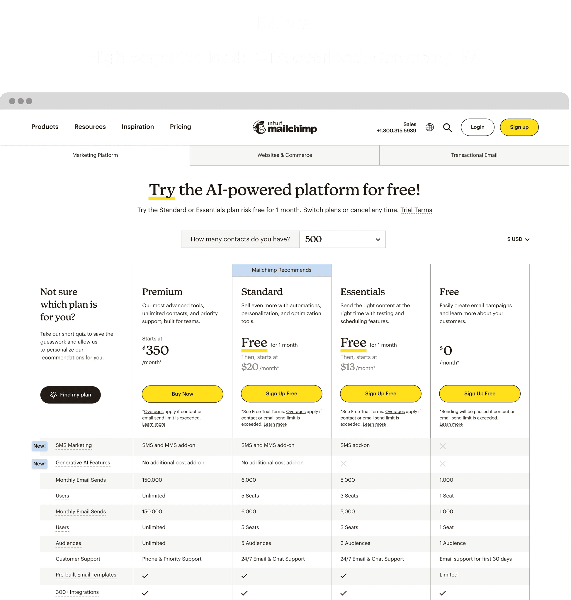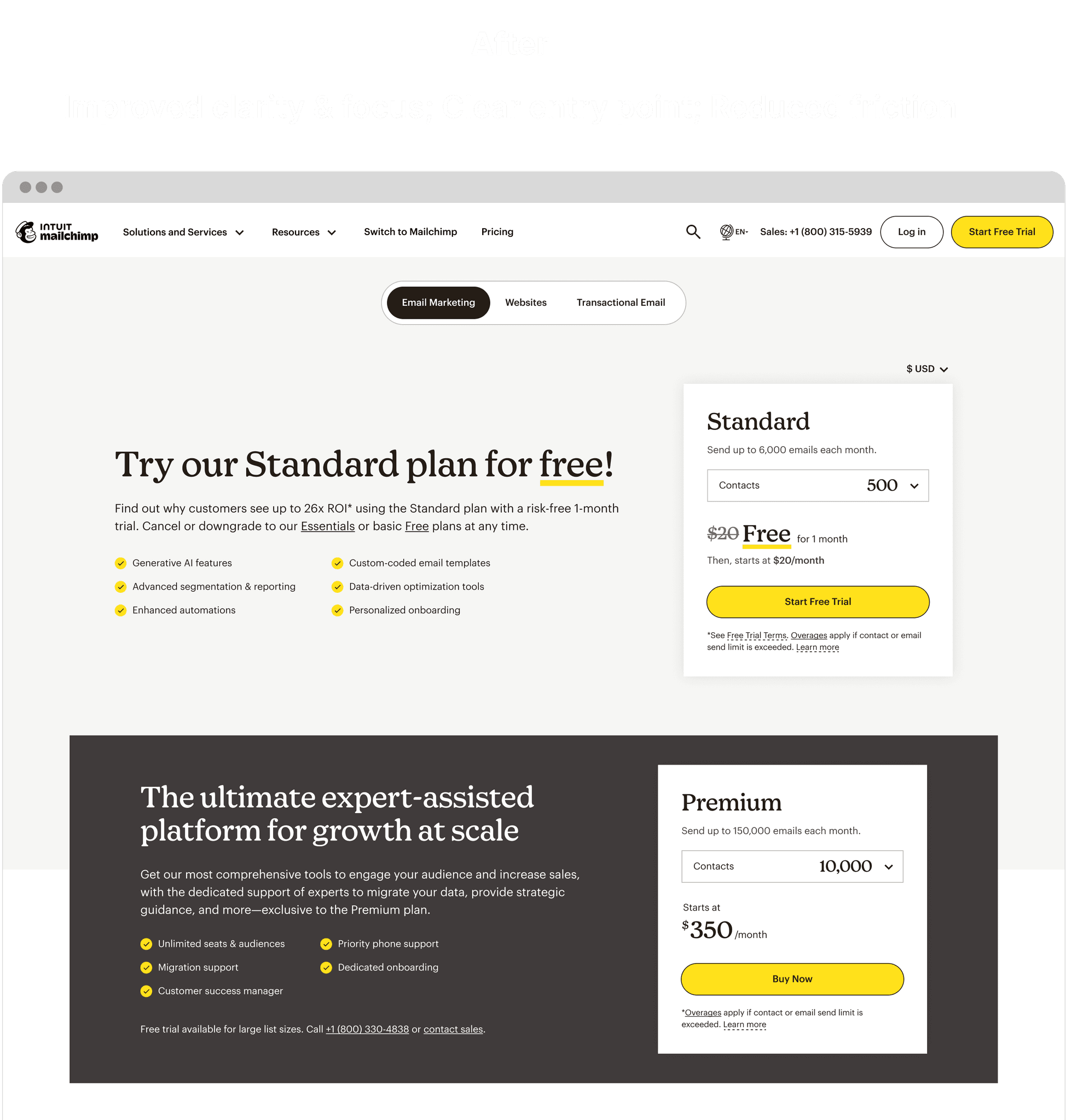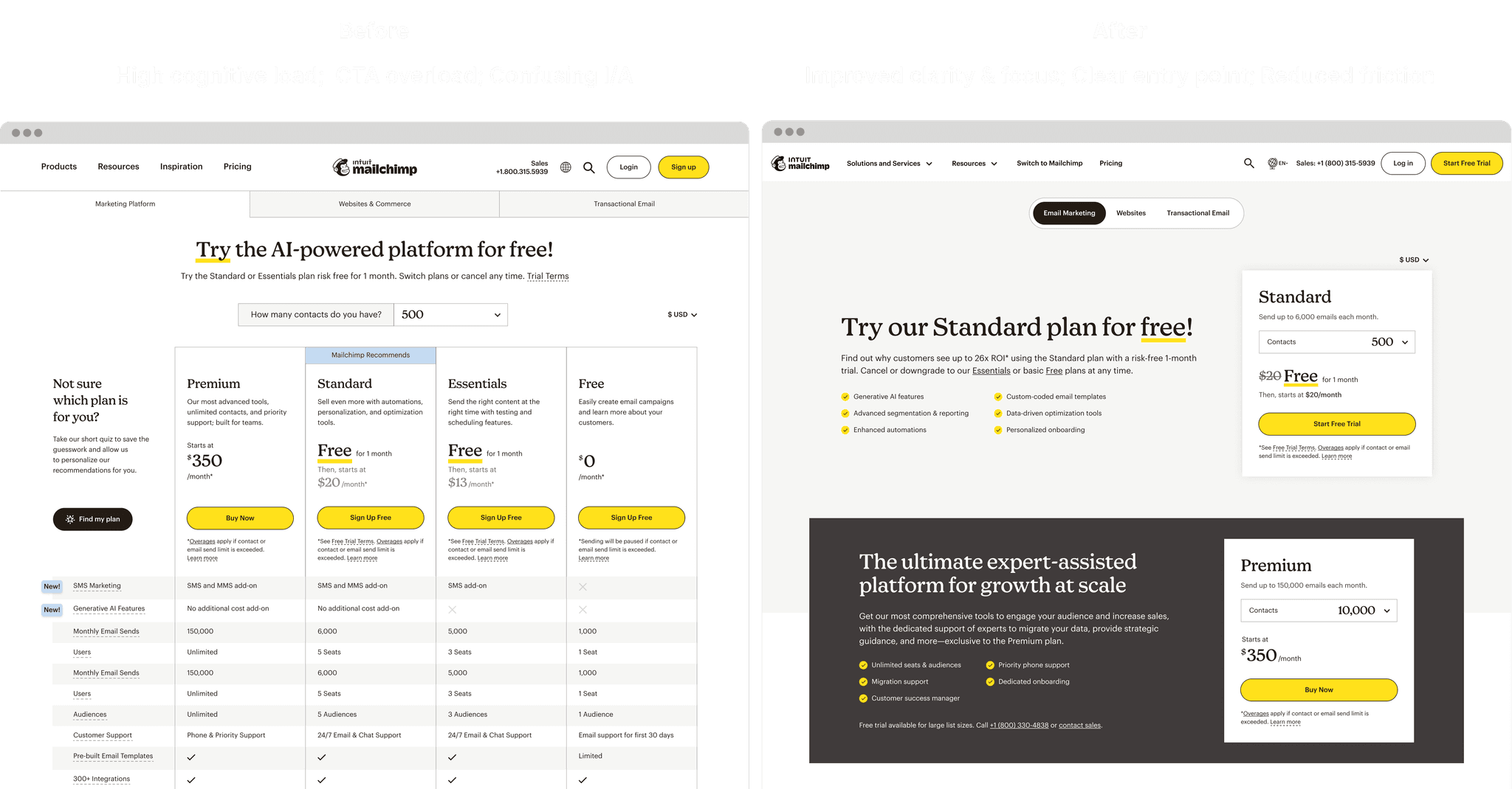 I led the redesign of mailchimp.com/pricing which led to a 21% increase in free trial start rate and 13% increase in paid conversions.